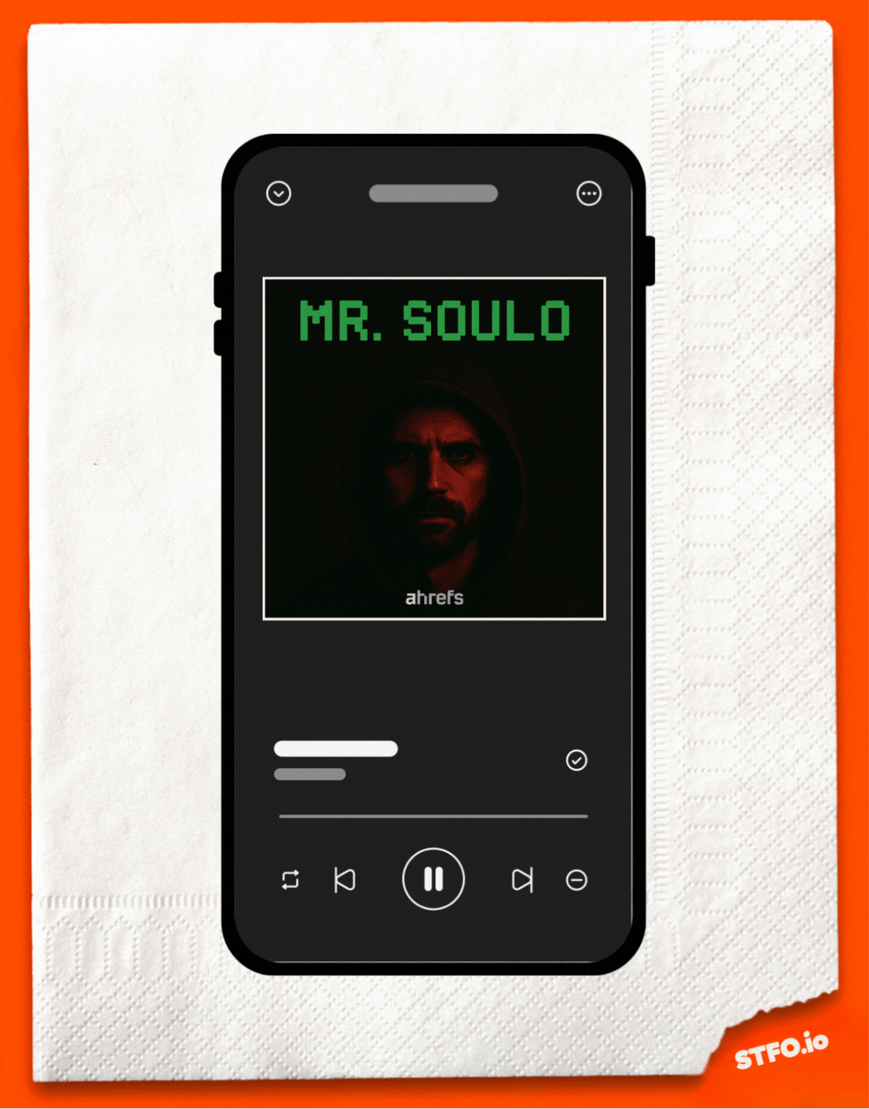 I would play with the traditional Ahrefs colors and font. “Mr. Soulo” is its own thing. It’s not about SEO, it’s not about Ahrefs and the way they work, it’s much deeper than that.